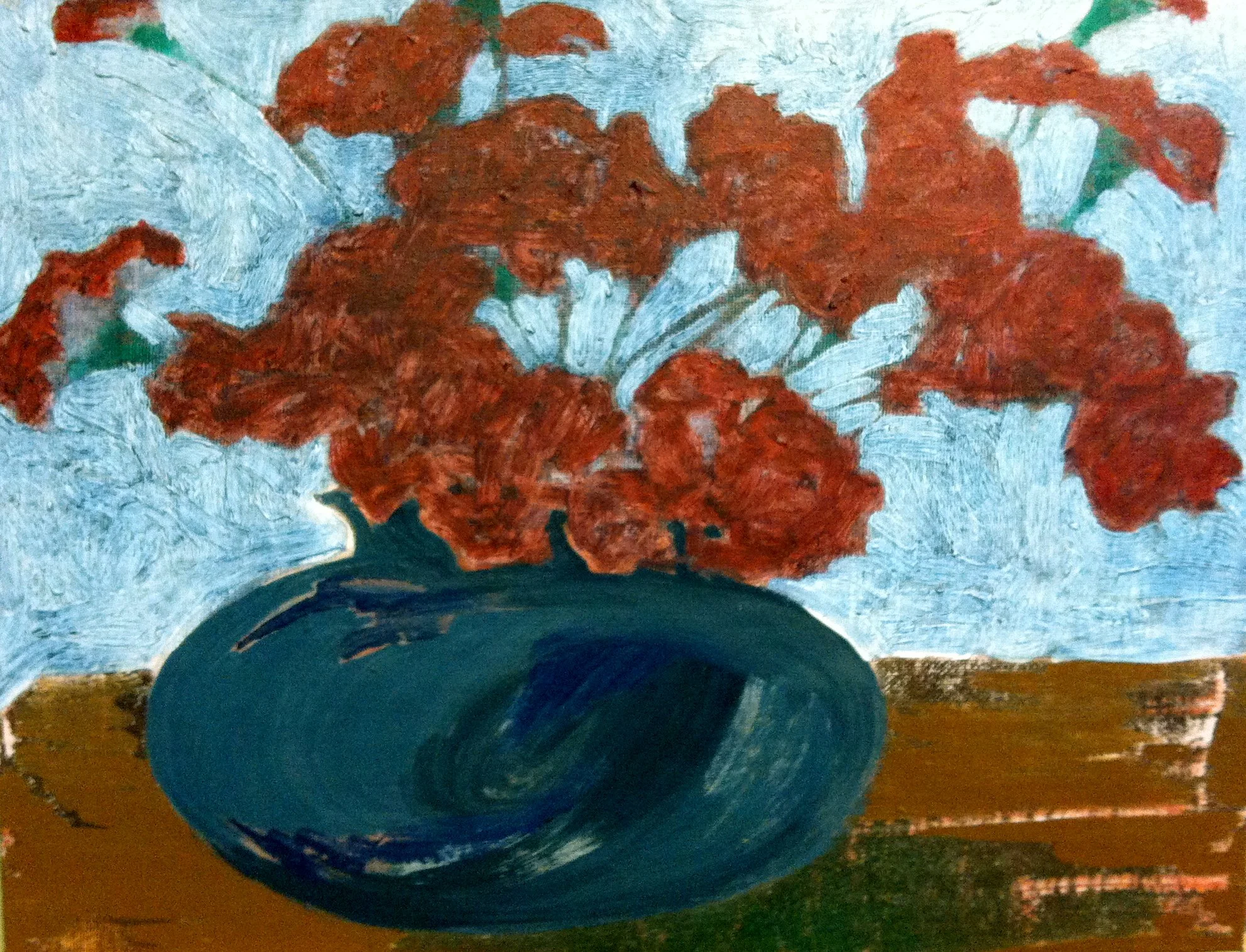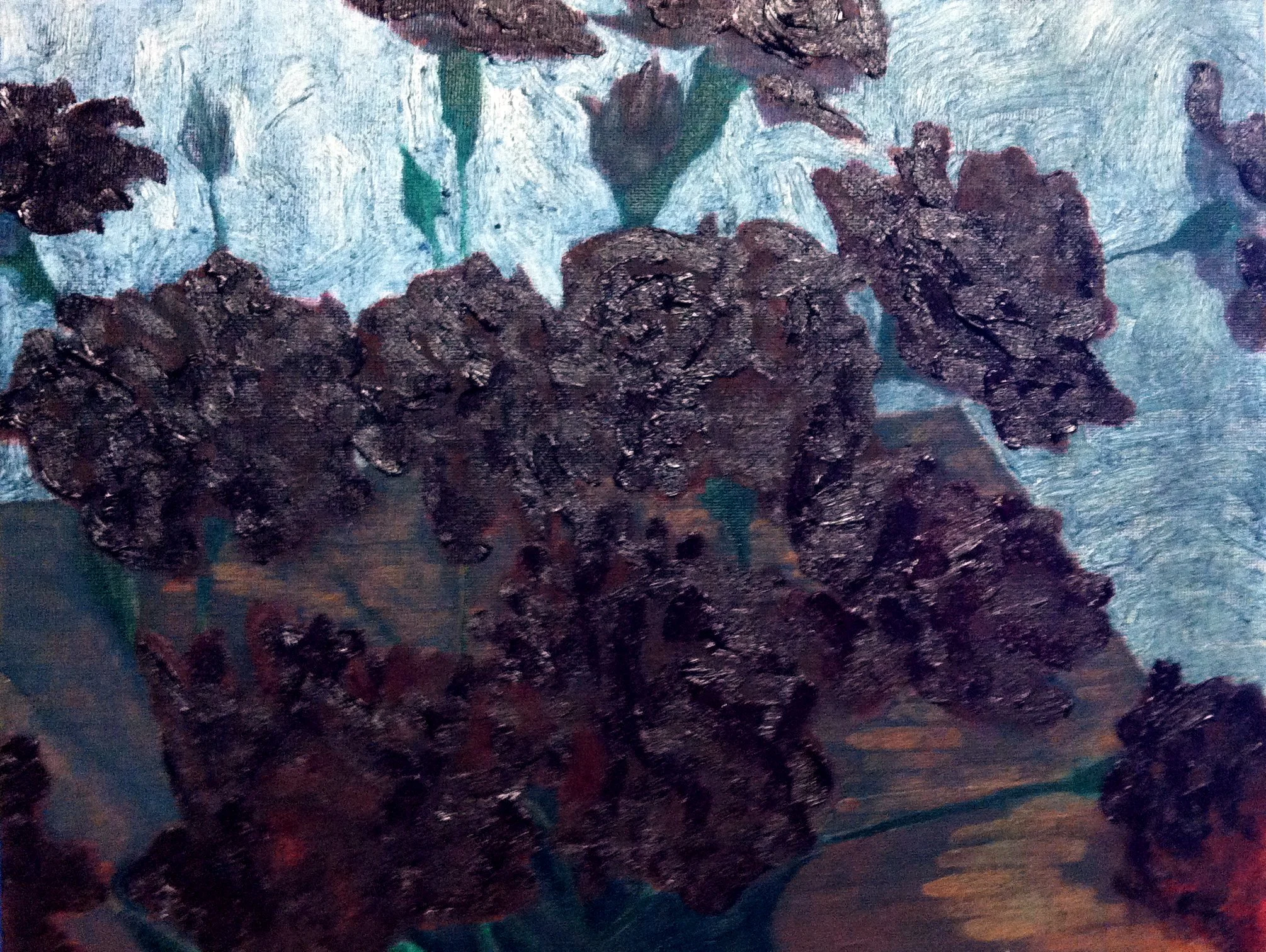 "Indigo Flowers," Oil on Canvas Board, 11" x 14"