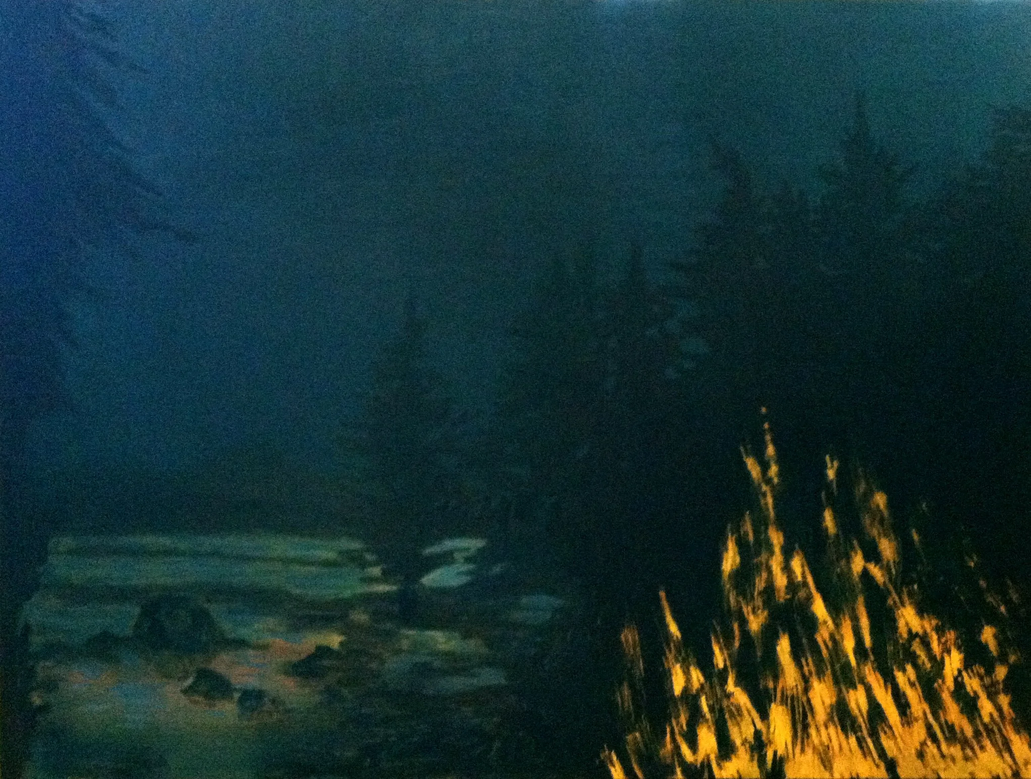 "Fire at Night," Oil on Canvas Board, 11" x 14"