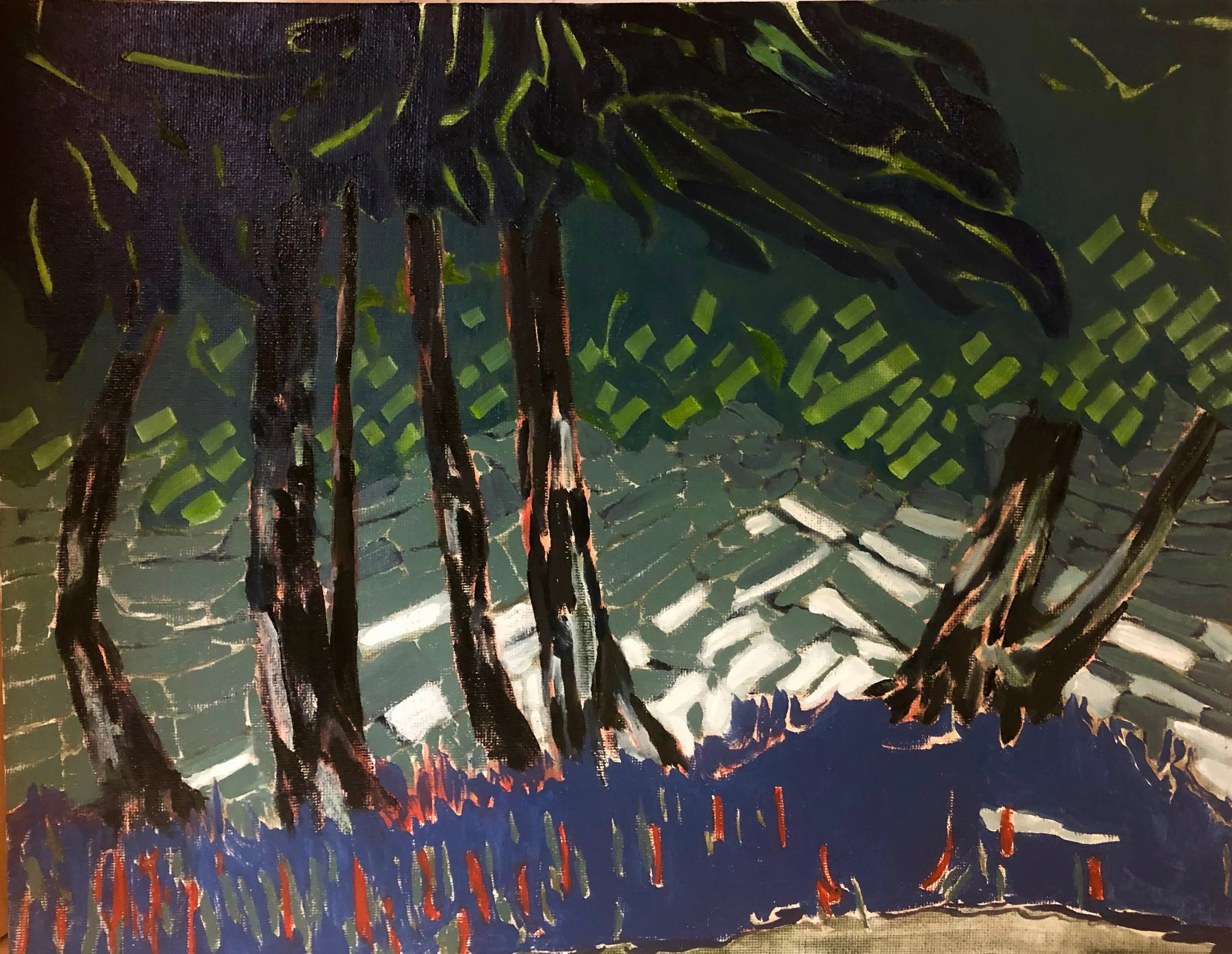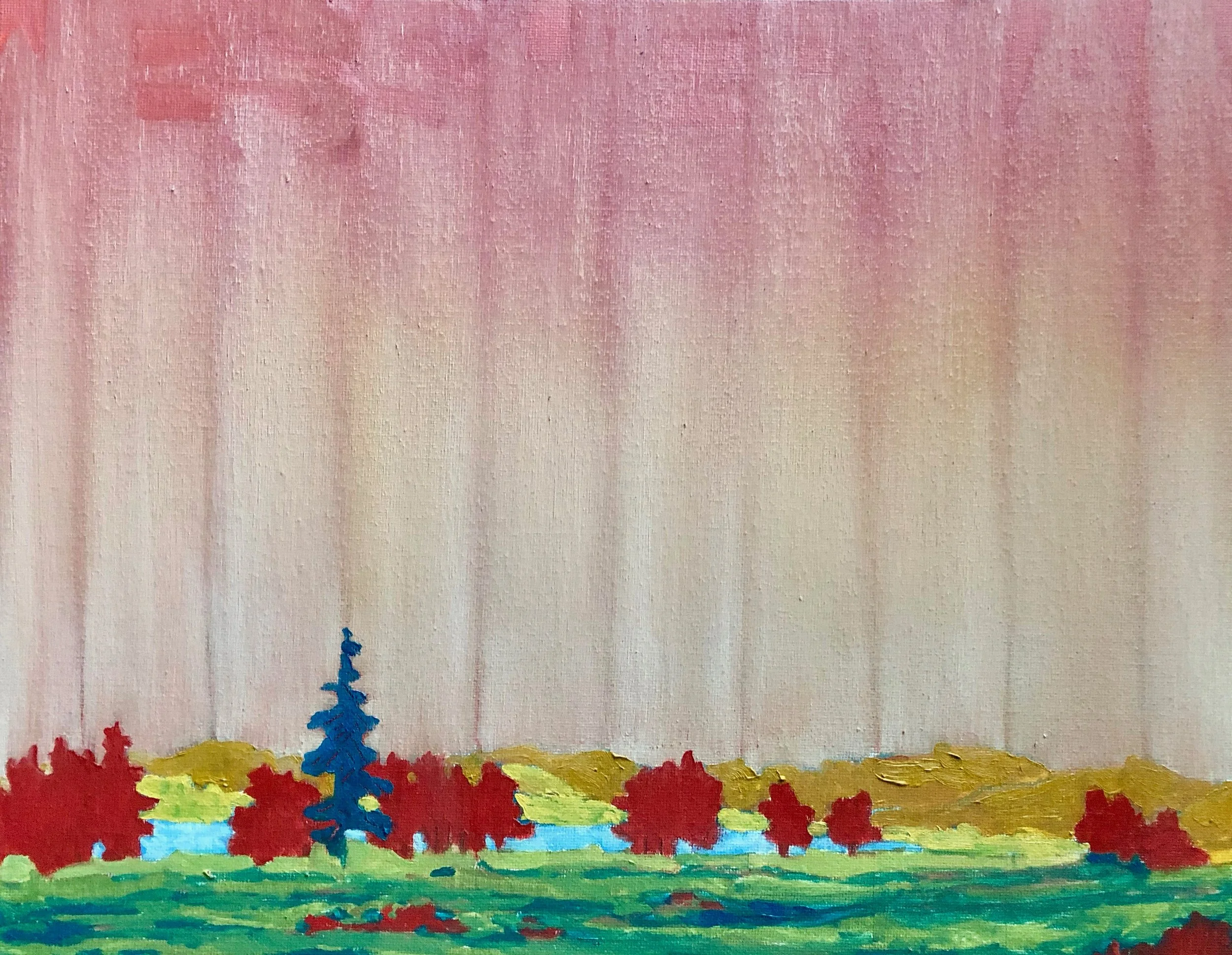 "Red Trees," Oil on Canvas Board, 11" x 14"