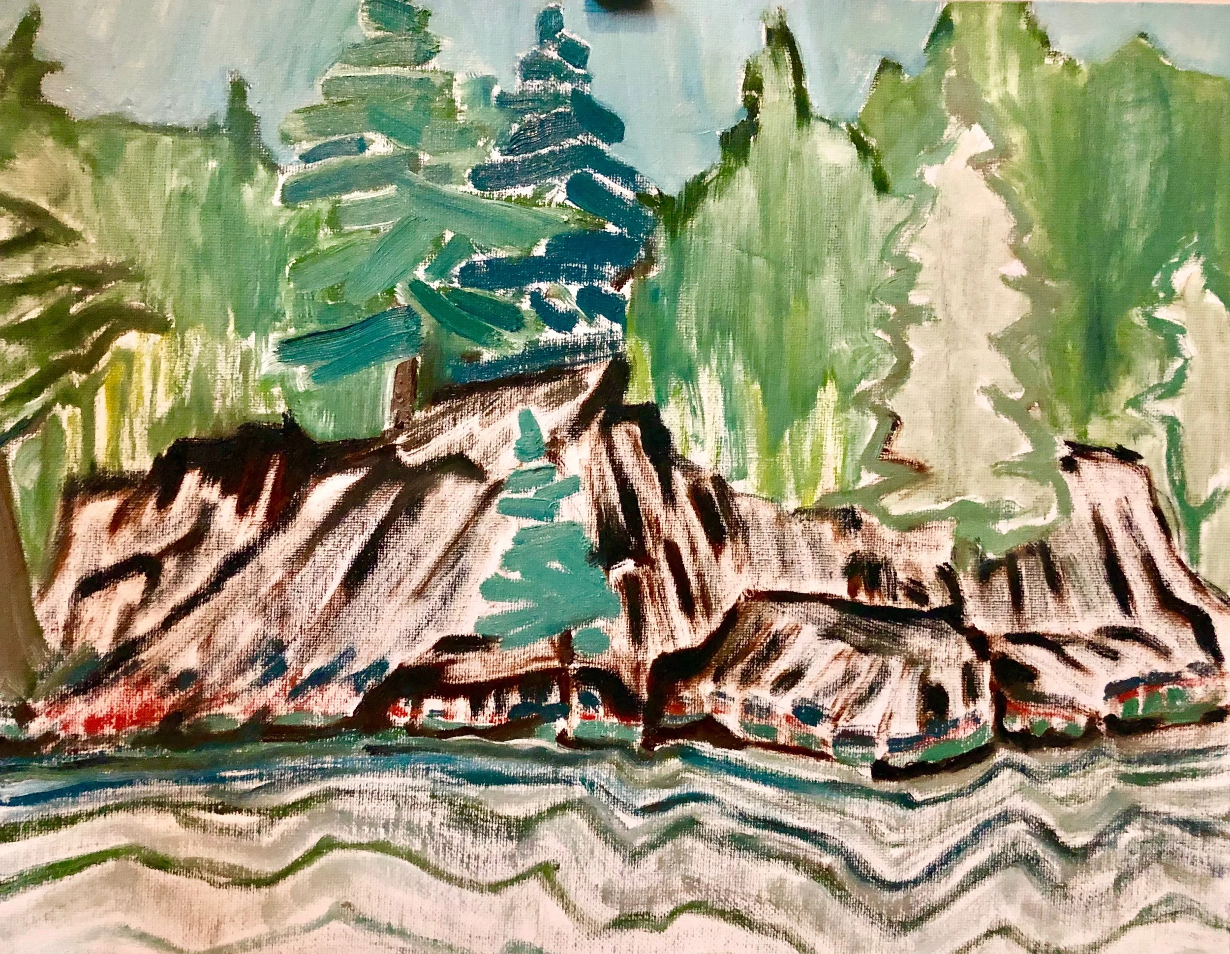 "Trees on Lake," Oil on Canvas Board, 11" x 14"