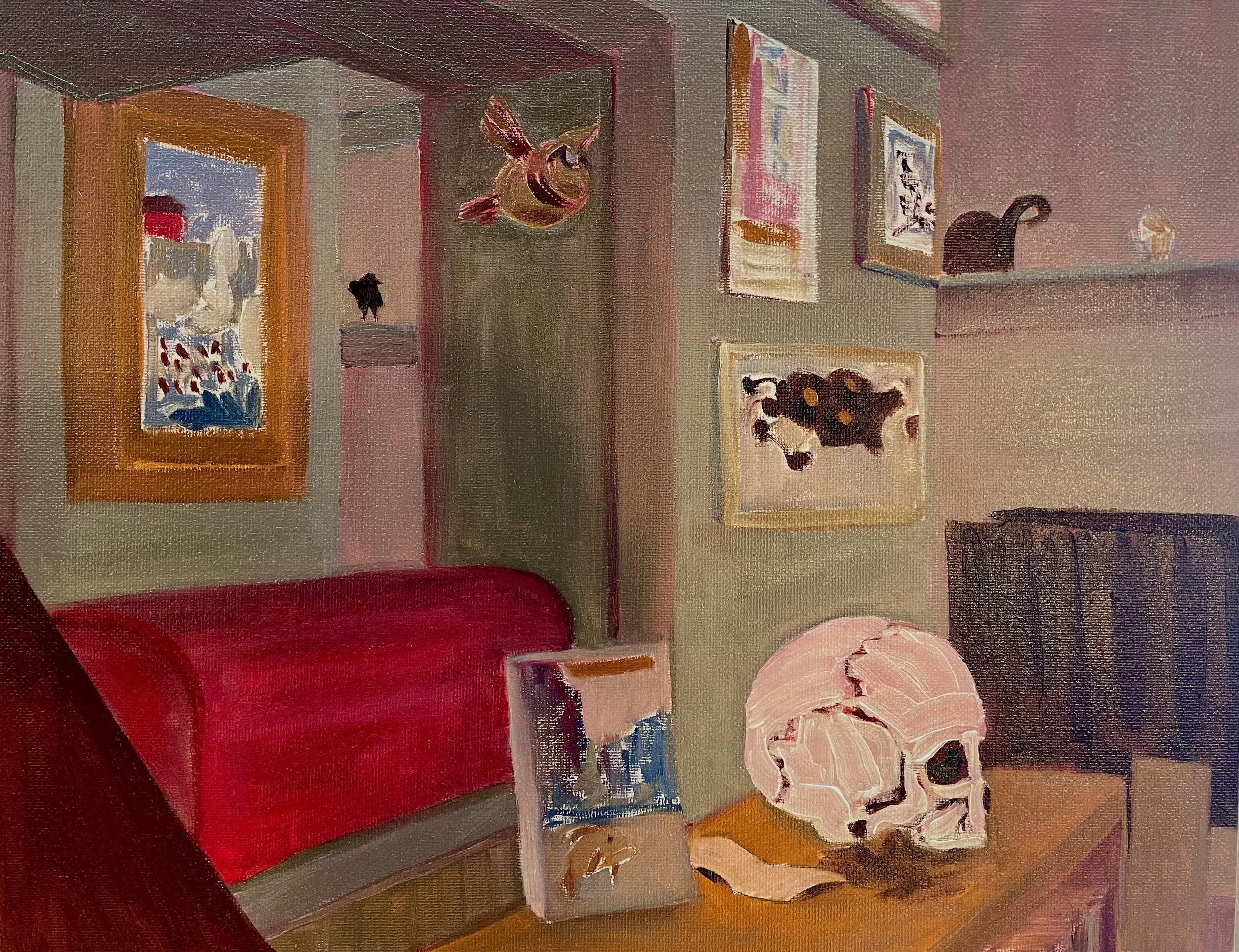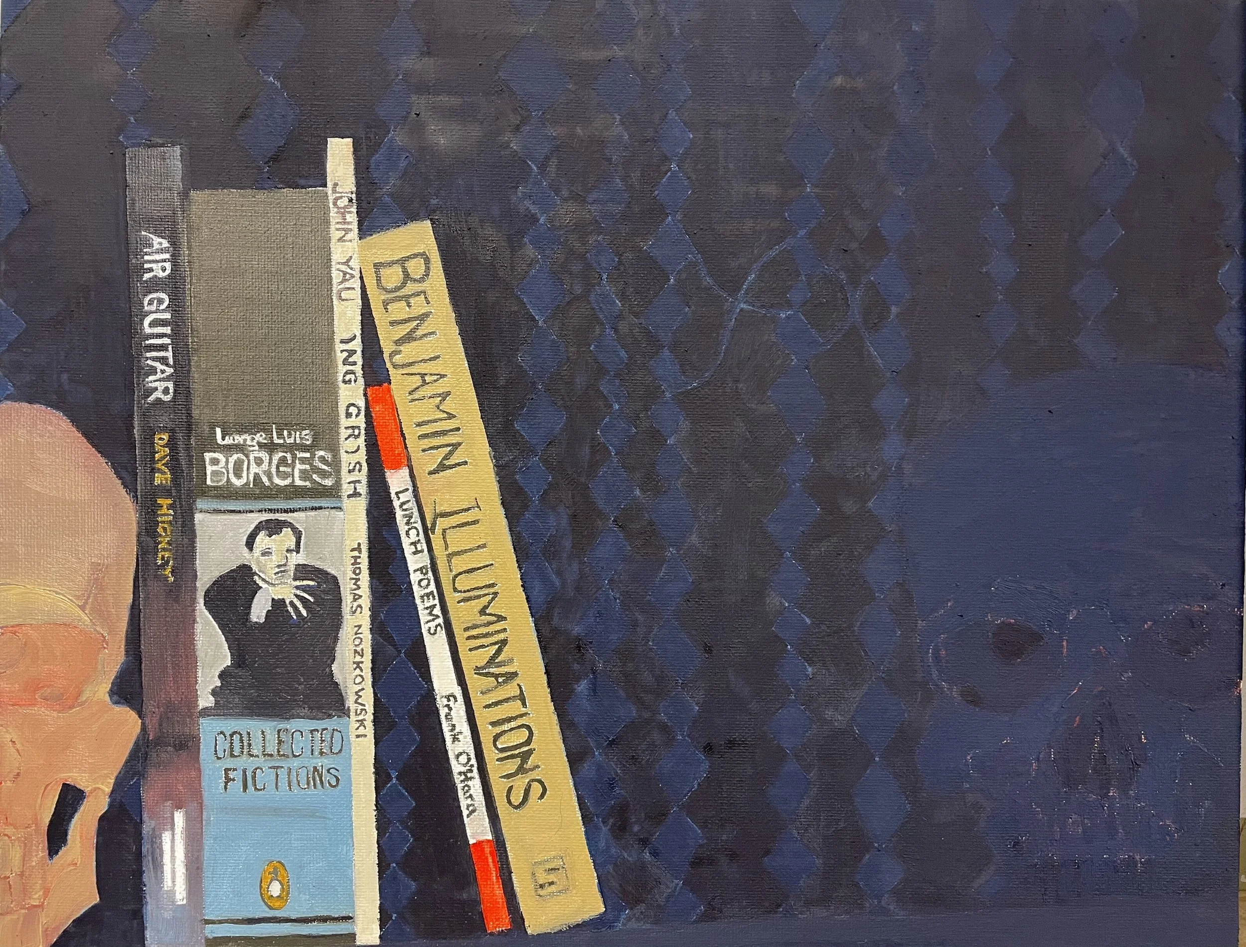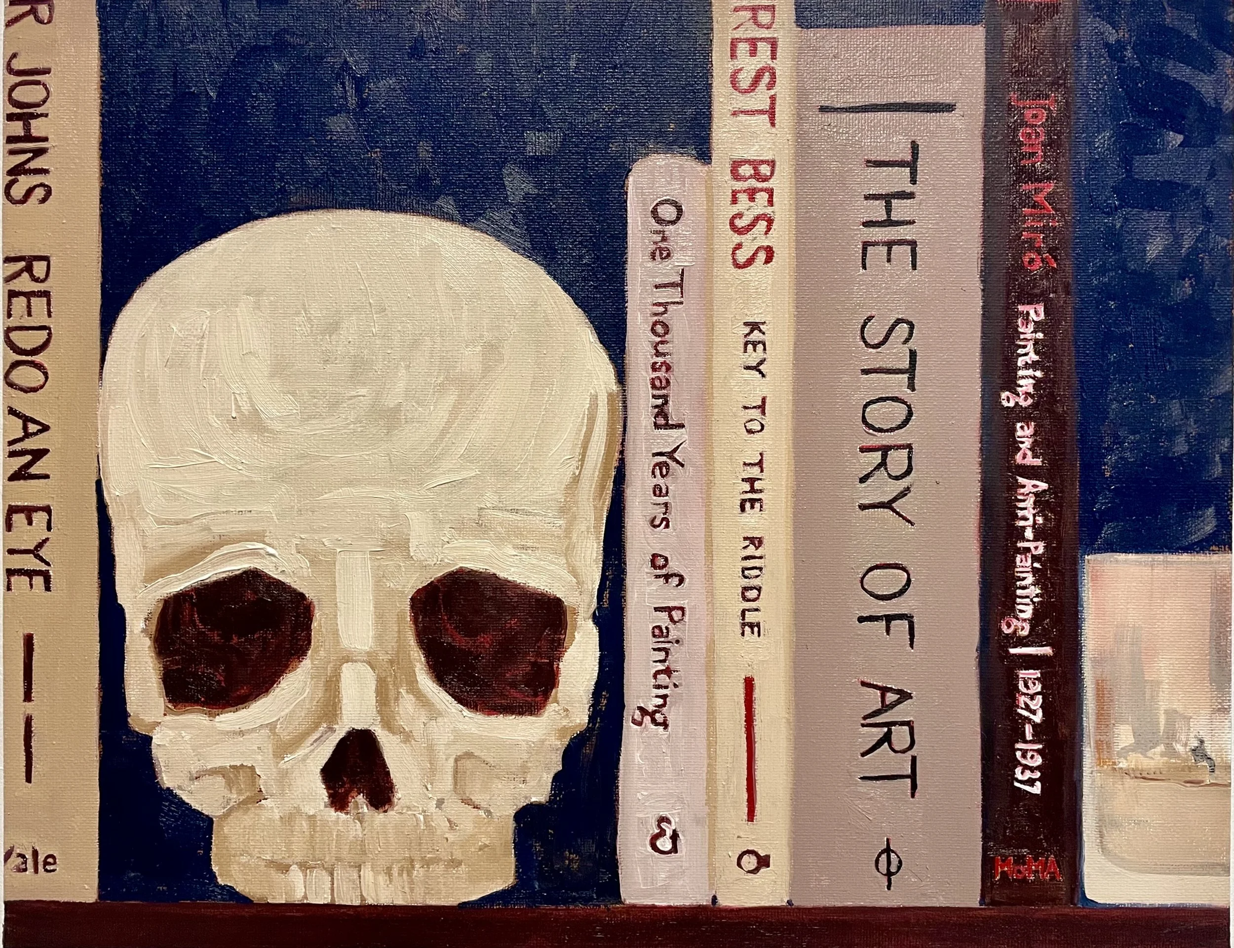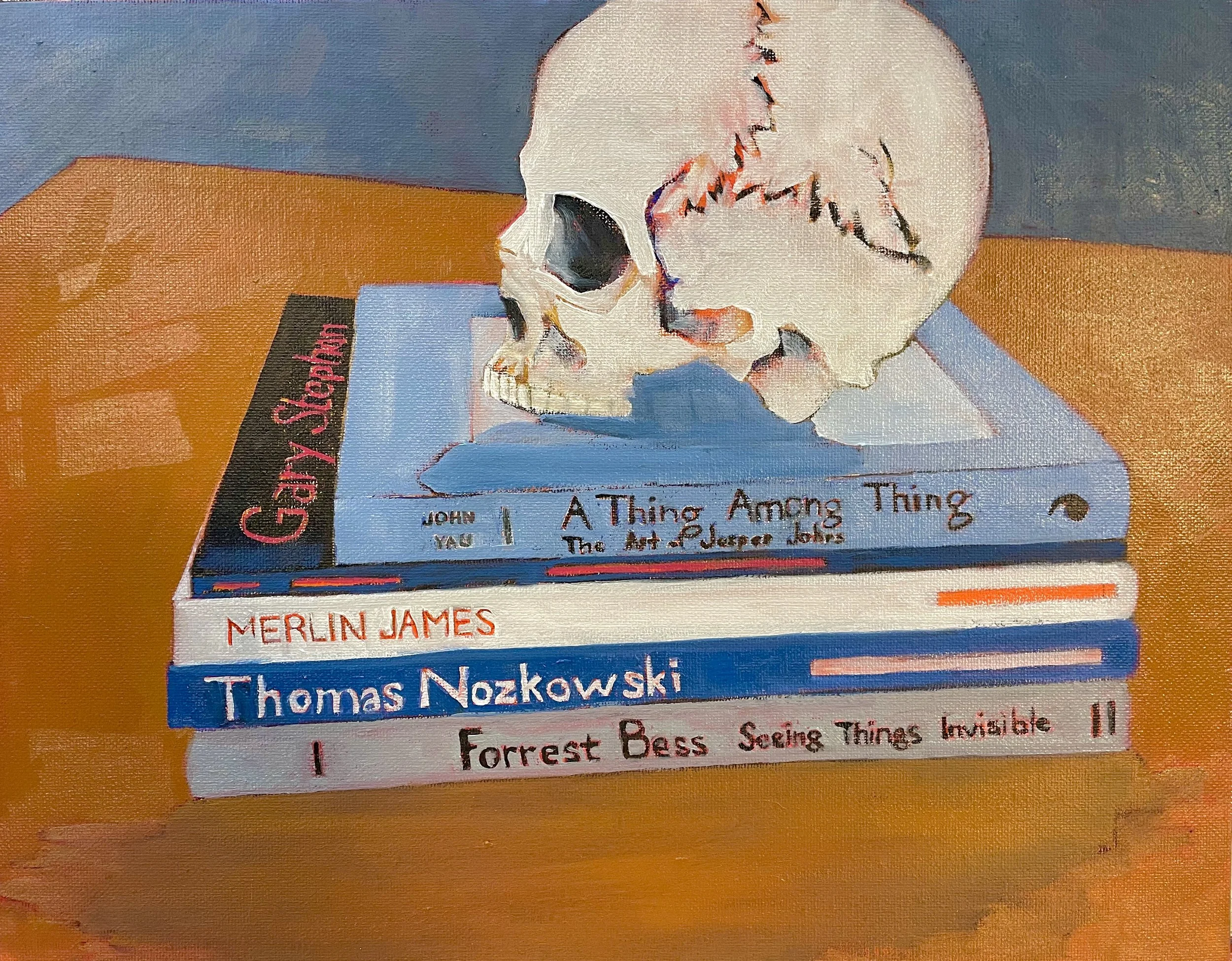 "Skull as Bookend," Oil on Canvas Board, 11" x 14"