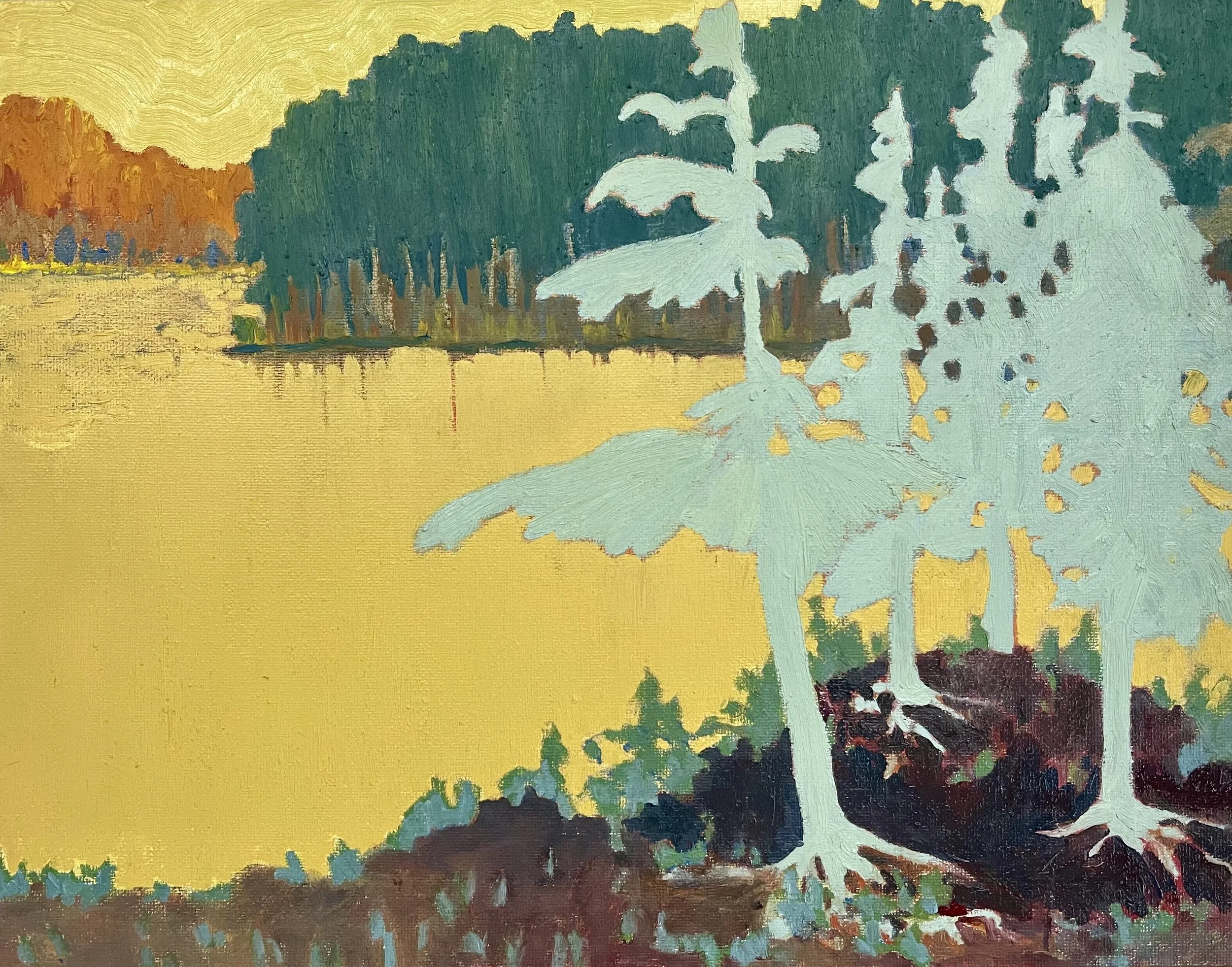 "Green Trees, Yellow Lake," Oil on Canvas Board, 11" x 14"